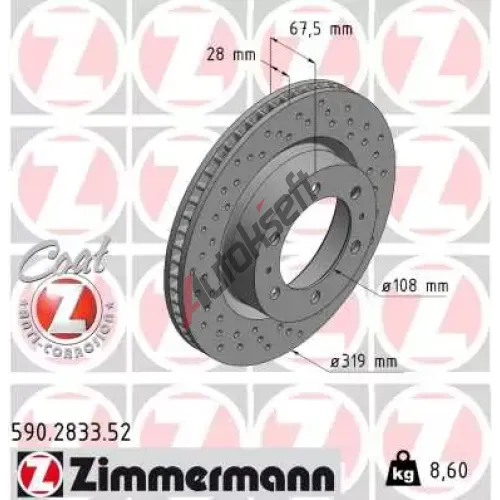 ZIMMERMANN Brzdový kotouč SPORT COAT Z - 319 mm ZIM 590.2833.52, 590.2833.52