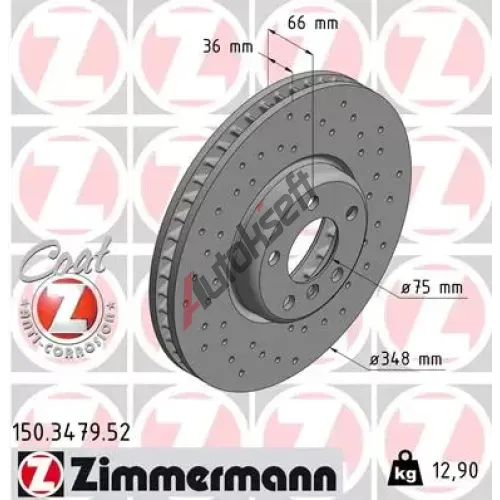 ZIMMERMANN Brzdový kotouč dírkovaný SPORT COAT Z - 348 mm ZIM 150.3479.52, 150.3479.52