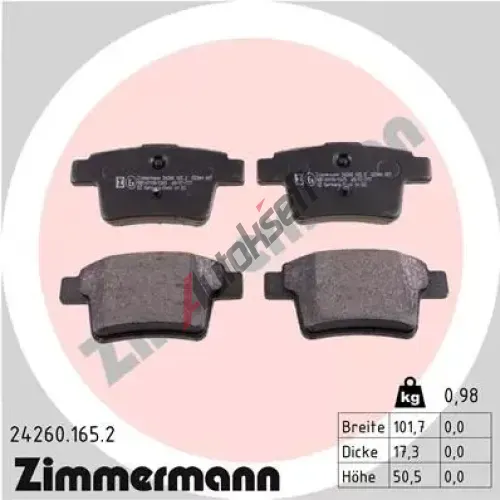 ZIMMERMANN Sada brzdových destiček ZIM 24260.165.2, 24260.165.2